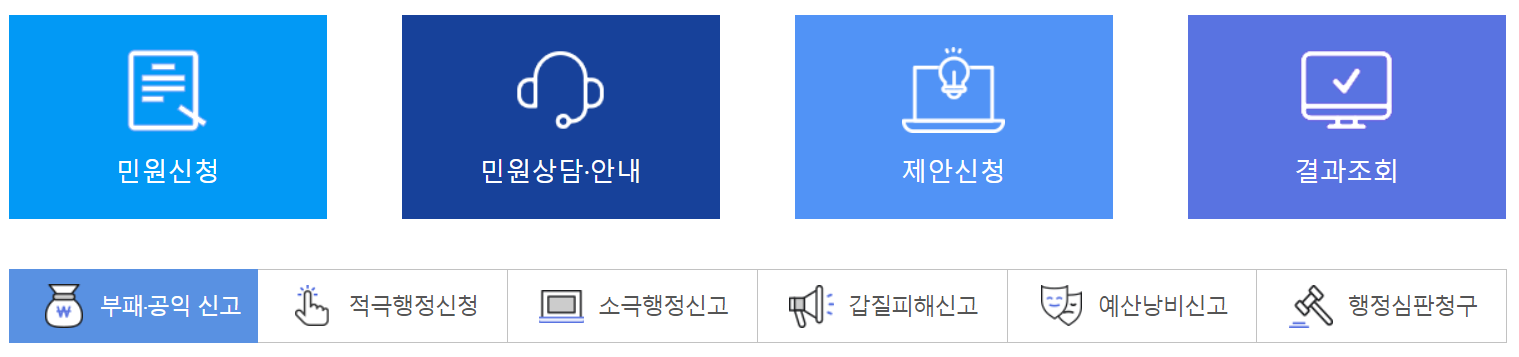 국민권익위원회가 운영하는 온라인 국민참여포털로 민원신청, 국민제안, 정책참여 창구