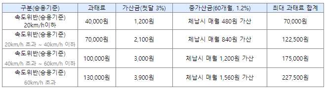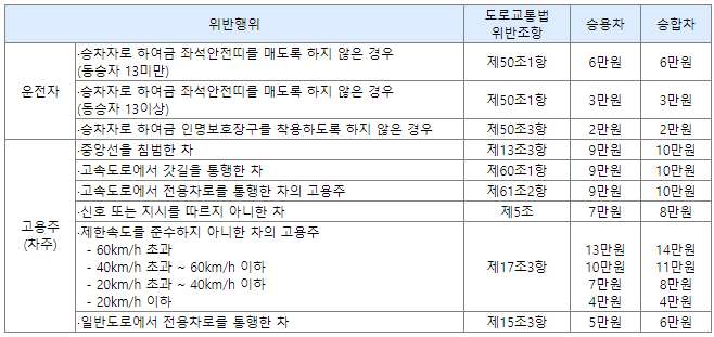 교통법규 위반 과태료 금액