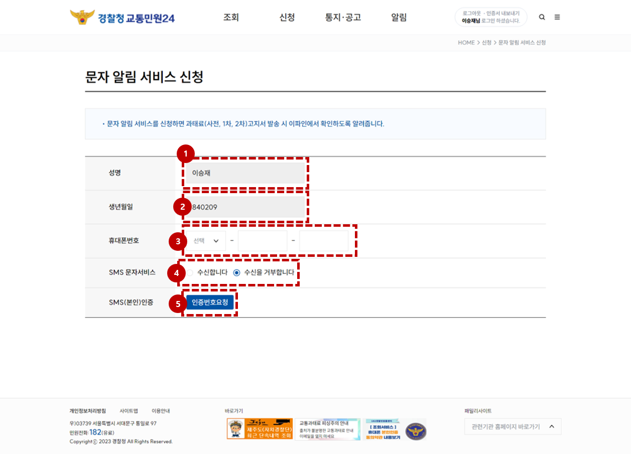 교통법규 위반 문자 알림서비스 바로가기