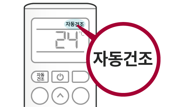 습기는 곰팡이, 세균의 서식 조건이 되며, 깨끗한 에어컨을 위해 자동 건조 기능을 설정해서 사용하시길 권장합니다.