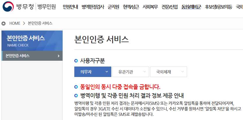 위의 그림을 클릭하여 병무청 사이트에 접속합니다.