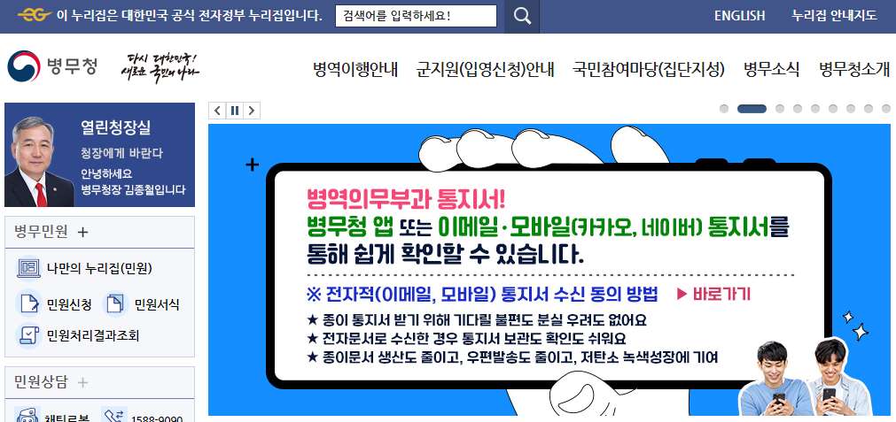 위의 그림을 클릭하여 병무청 사이트에 접속합니다.
