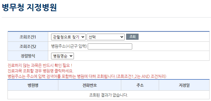 ✅ 병무청 지정병원(바로가기)